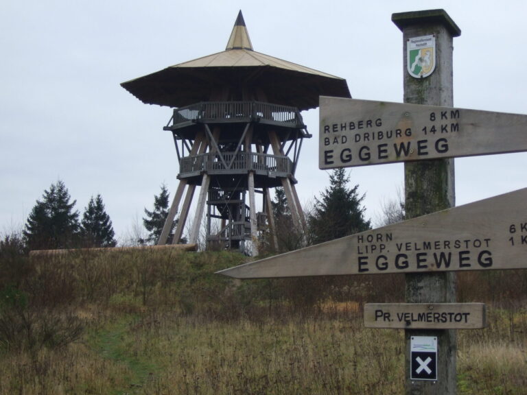 Kreis Höxter. Hoch über den Talauen von Sandebeck und Feldrom erhebt sich mit 468 Metern der höchste Berg des Eggegebirges, der Prußische Velmerstot. Mit der Eröffnung des neuen Aussichtsturmes auf der höchsten Erhebung des in Nord-Süd-Richtung verlaufenden Gebirgszuges hat der Wanderer jetzt noch einen besseren Panoramablick. Er schaut praktisch aus rund 478 Metern Höhe über ein geschütztes Waldreservat an der Peripherie von Hochstift und Lippe.